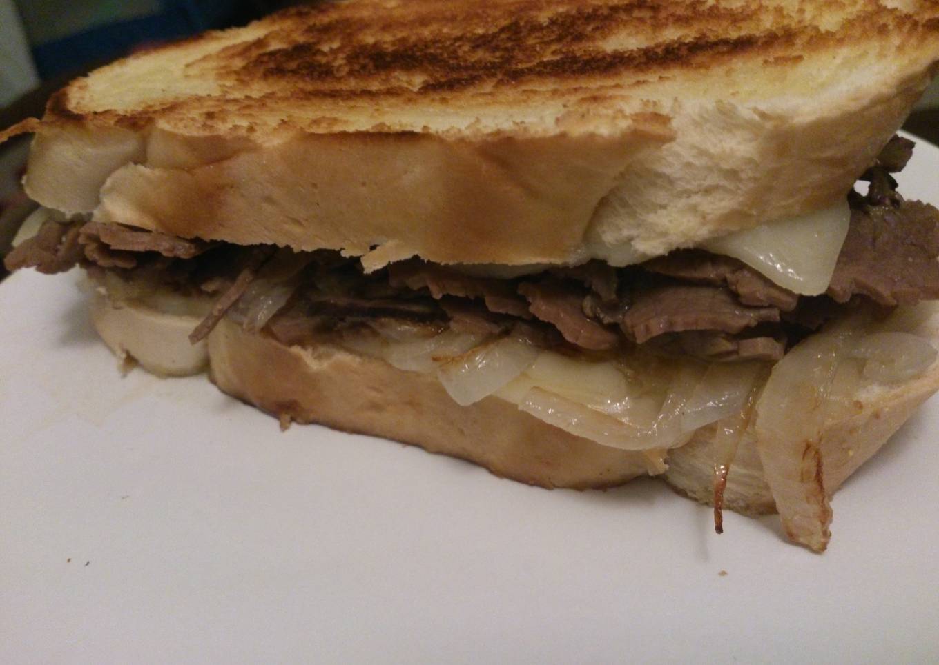 - Finish it off by closing up the sandwich and use remaining consomme for dipping.