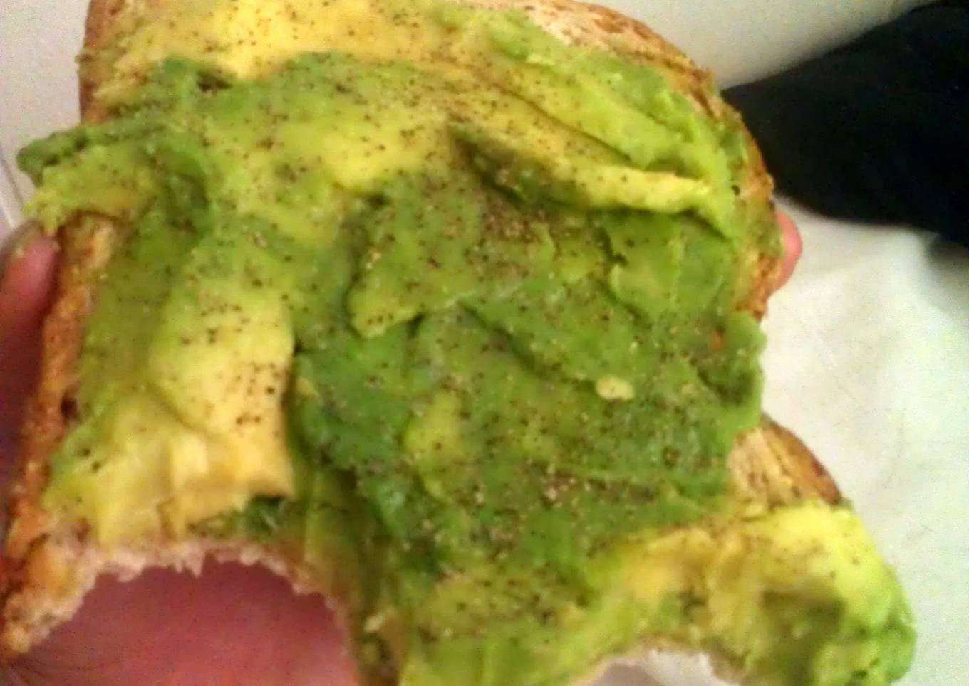 - take a spoon an scoop the slices of avocado out onto your toasted bread