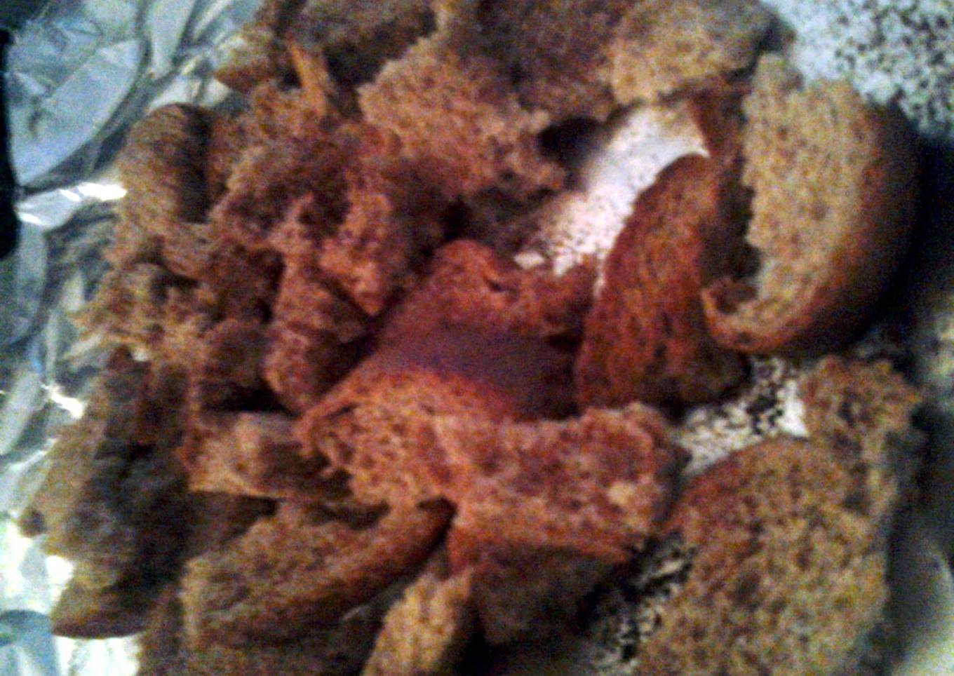 - Tear the 3 slices of bread apart into several smaller pieces